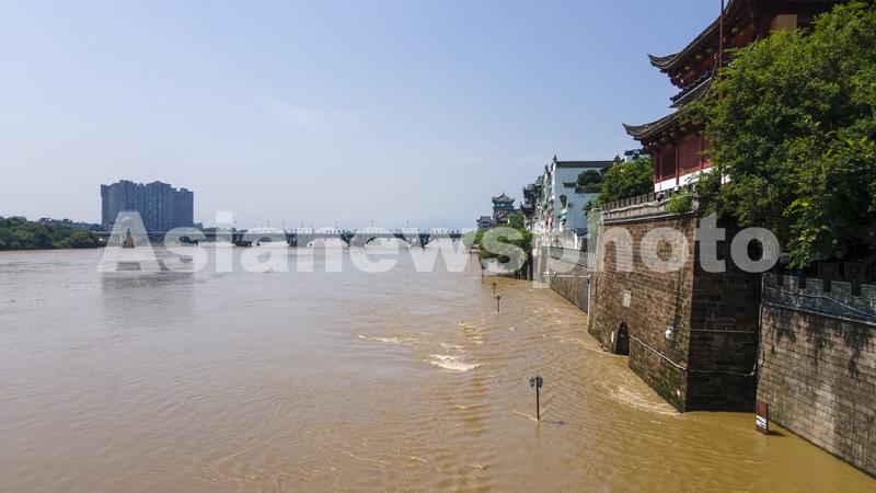 图片说明:2022年6月6日下午,航拍浙江省金华市兰江水域,钱塘江2022年1号洪水正安全过境(无人机照片)。