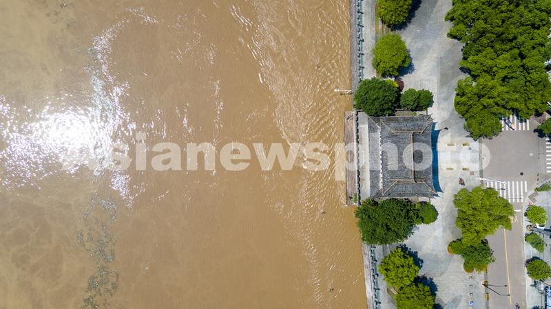 图片说明:2022年6月6日下午,航拍浙江省金华市兰江水域,钱塘江2022年1号洪水正安全过境(无人机照片)。