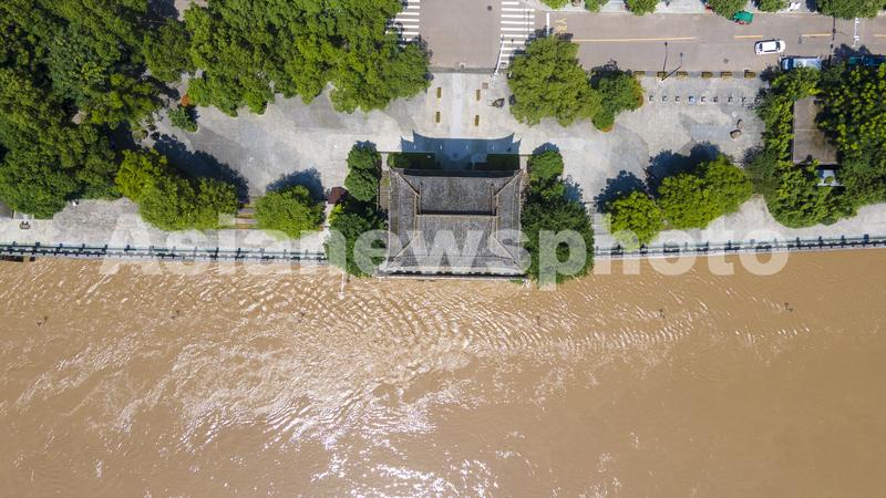 图片说明:2022年6月6日下午,航拍浙江省金华市兰江水域,钱塘江2022年1号洪水正安全过境(无人机照片)。
