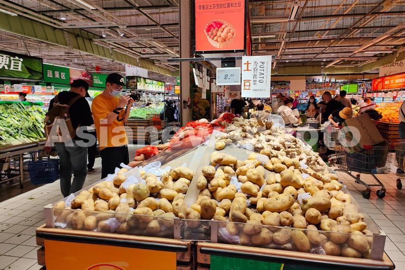 图片说明:2022年6月6日,上海,杨浦区大润发超市在入口处打出“福”和“再见你真好”的字样,超市内顾客众多。2022年6月6日,上海,杨浦区大润发超市在入口处打出“福”和“再见你真好”的字样,超市内顾客众多。