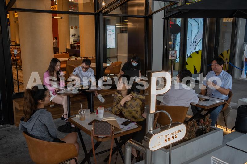 2022年6月8日,上海新天地、前滩等商圈,开放户外就餐区供顾客现场用餐。
