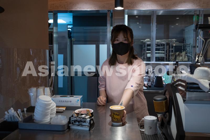 6月8日下午,位于云锦路的Buna& Pate,店员为顾客制作咖啡