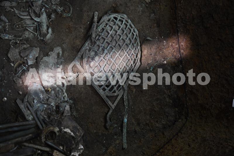 三星堆遗址7号“祭祀坑”拍摄的龟背形网格状器(6月1日摄)。