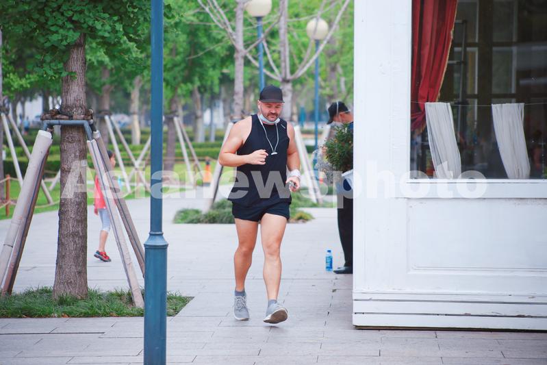 2022年6月19日,上海,徐汇滨江休闲健身公园恢复人气与活力,外国跑步爱好者在黄浦江边运动锻炼。