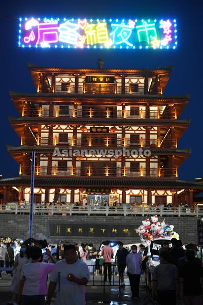 2022年6月17日晚,在安徽省亳州市曹操地下运兵道景区的“后备箱夜市”,吸引了不少市民和游客参与。