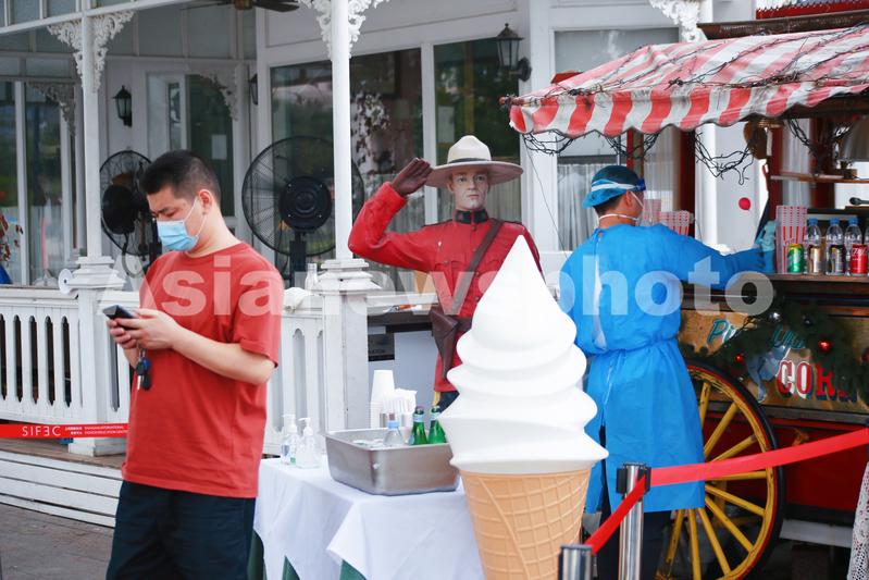 2022年6月19日,上海,徐汇滨江休闲健身公园恢复人气与活力,黄浦江边的冰淇淋、饮料小店恢复运营。