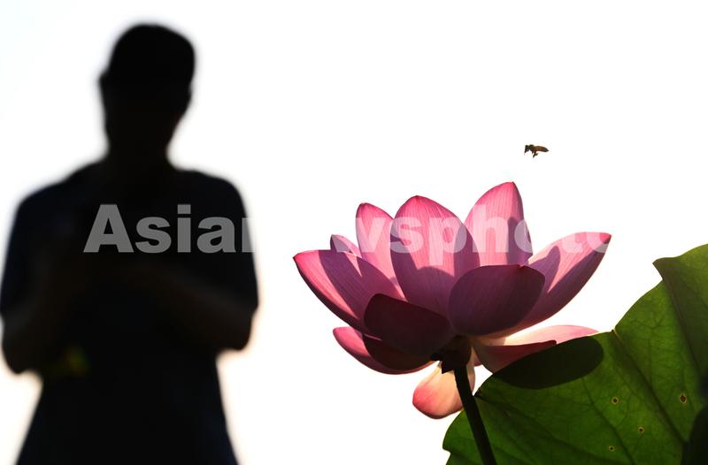 图片说明:6月21日,游人在河北省邯郸市龙湖公园欣赏盛开的荷花。