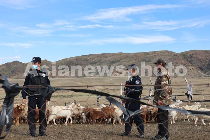 图片说明:2022年6月20日,民警查看羊群数量。