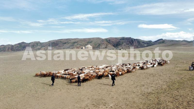 图片说明:2022年6月20日,民警将羊群赶回羊圈途中。