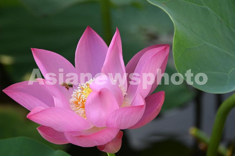 图片说明:6月21日,在河北省邯郸市龙湖公园的荷塘,蜜蜂飞舞在花间。