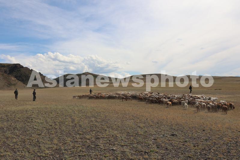 图片说明:2022年6月20日,民警将羊群赶回羊圈途中。