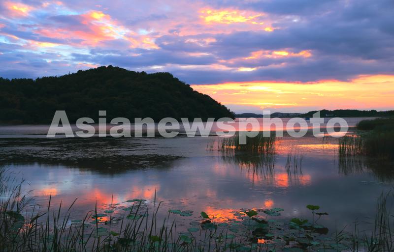 图片说明:2022年6月21日,安徽省合肥市庐江县罗河镇青山湖湿地保护小区水映霞光,景色如画。