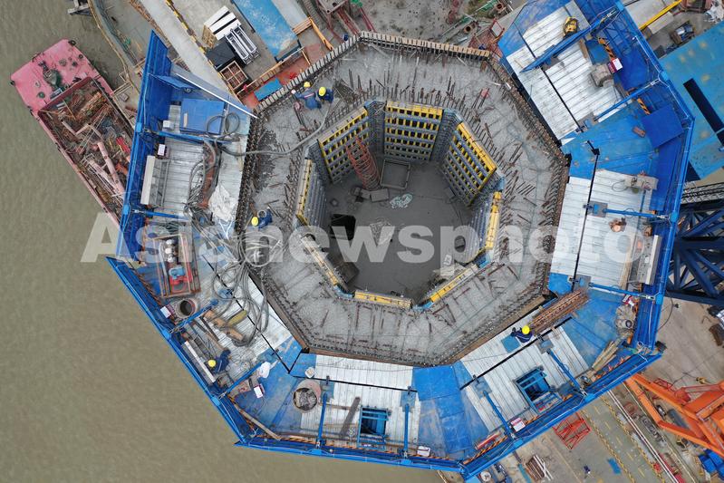 2022年6月22日,在江苏省常州市航拍建设中的常泰长江大桥。由中铁大桥局承建的常泰长江大桥连通江苏省常州市和泰兴市,是长江上首座集高速公路、城际铁路、一级公路“三位一体”的过江通道。大桥上层桥面布置为6车道高速公路,设计时速100公里;下层桥面上游侧布置为2线城际铁路,设计时速200公里;下层桥面下游侧布置为4车道一级公路,设计时速80公里。