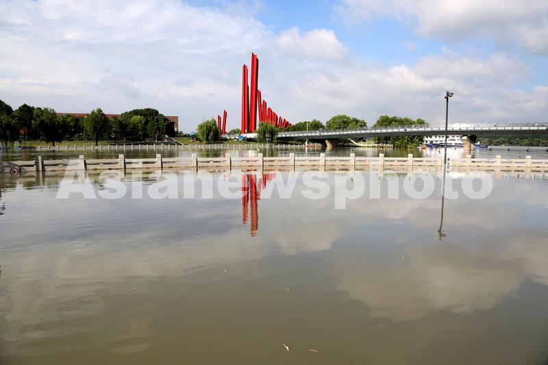 2022年6月24日,南京三汊河长江入江口两岸步行道及绿化带被淹。
