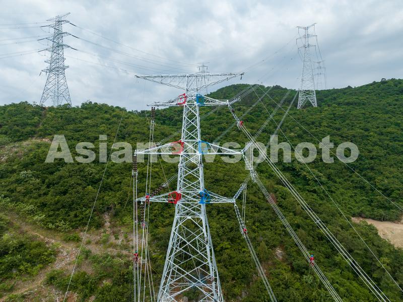 图片说明:6月23日,国网南京供电公司输电线路工人对南京青龙山500千伏输变电升压工程线路工程进行走线验收。