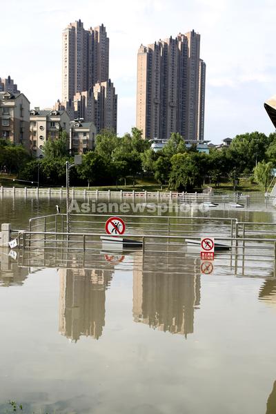 2022年6月24日,南京三汊河长江入江口两岸步行道及绿化带被淹。