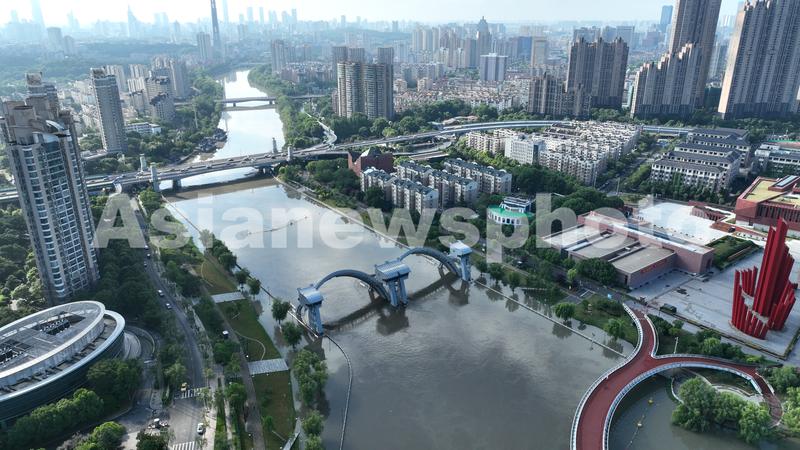 2022年6月24日,南京三汊河长江入江口两岸步行道及绿化带被淹。