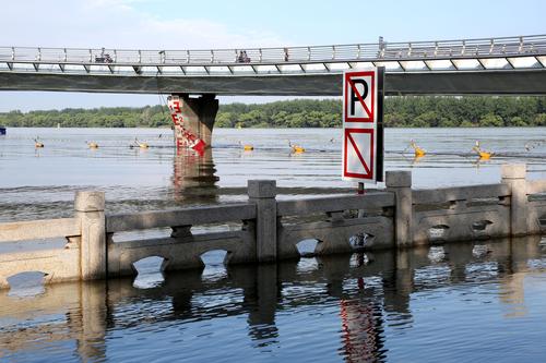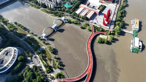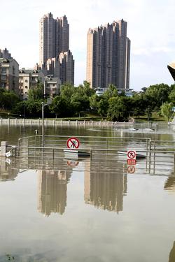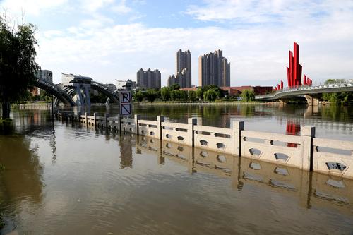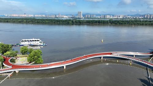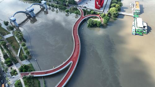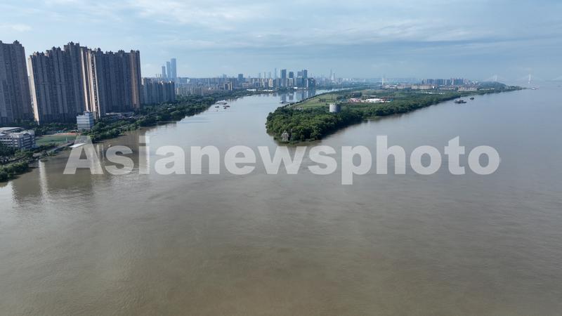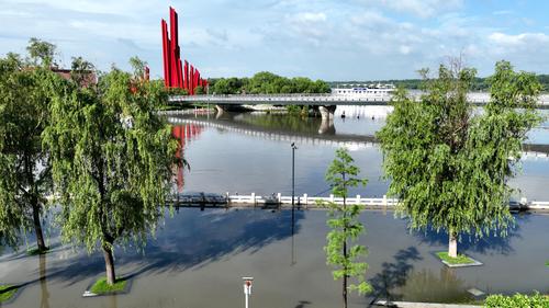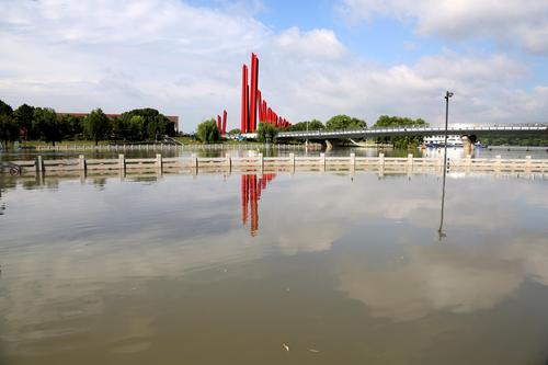 2022年6月24日,南京三汊河长江入江口两岸步行道及绿化带被淹。