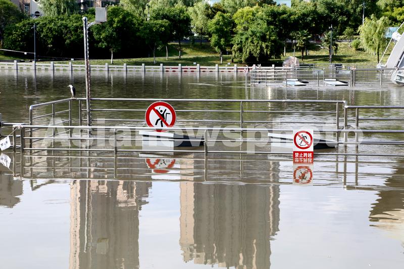 2022年6月24日,南京三汊河长江入江口两岸步行道及绿化带被淹。