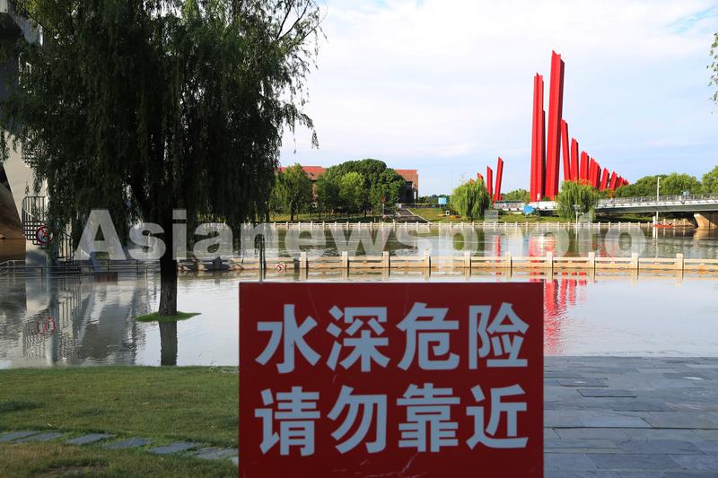 2022年6月24日,南京三汊河长江入江口两岸步行道及绿化带被淹。