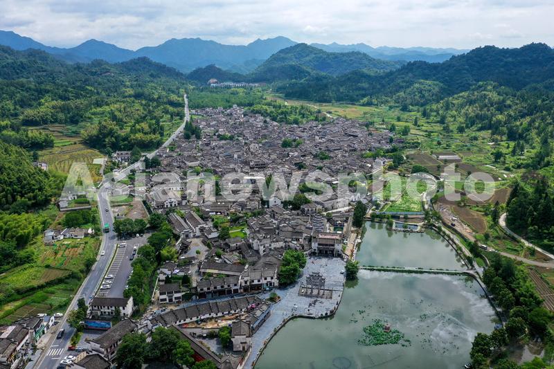 图片说明:2022年6月23日,在安徽省黄山市黟县拍摄的西递古村落夏日美景。(无人机照片)