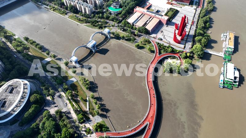 2022年6月24日,南京三汊河长江入江口两岸步行道及绿化带被淹。