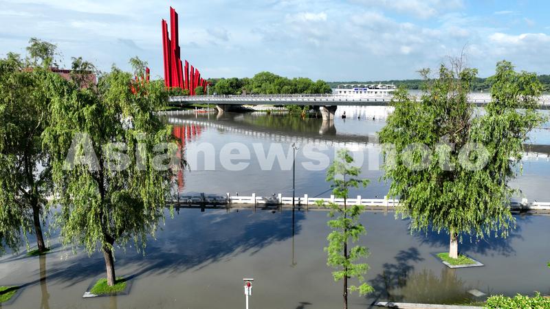 2022年6月24日,南京三汊河长江入江口两岸步行道及绿化带被淹。