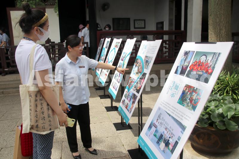 图片说明:2022年6月28日,游客在苏州狮子林建园680周年历史文化展主题活动上参观。