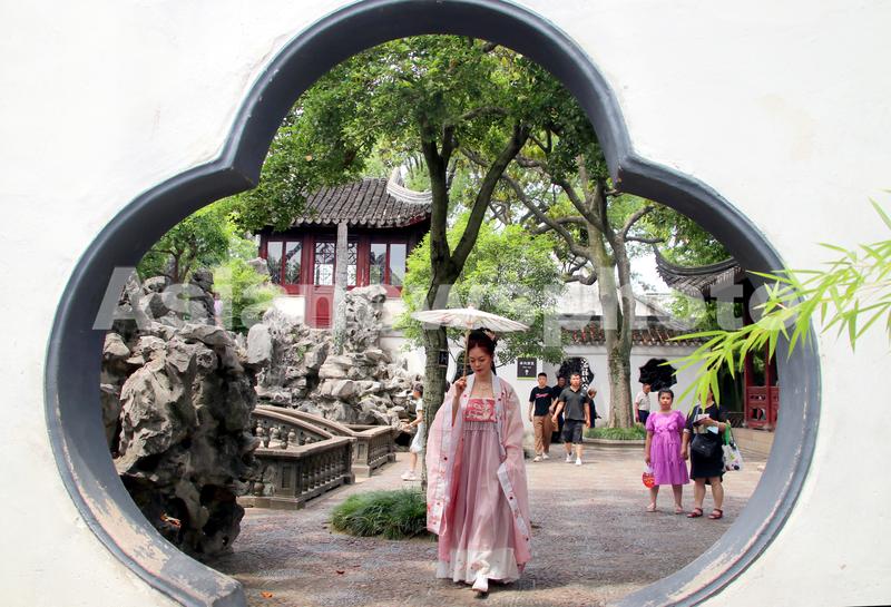 图片说明:2022年6月28日,游客在苏州古典园林狮子林参观游览。