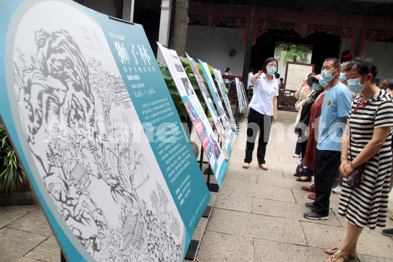 图片说明:2022年6月28日,游客在苏州狮子林建园680周年历史文化展主题活动上参观。