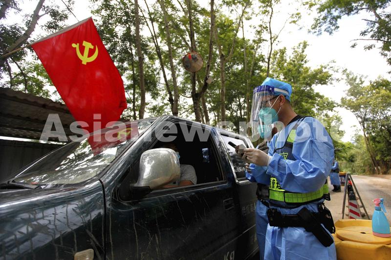 图片说明:2022年6月28日,云南普洱边境管理支队芒信边境派出所党员民警在灯根联合执勤点认真检查过往车辆和人员。