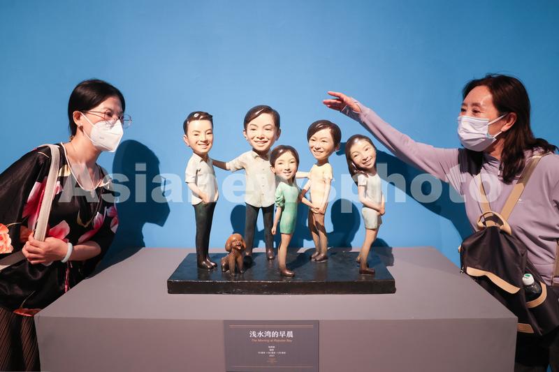 2022年6月30日,观众在中国国家博物馆举行的“笔墨丹青绘湾区——庆祝香港回归祖国25周年美术作品展”上观看雕塑《浅水湾的早晨》。