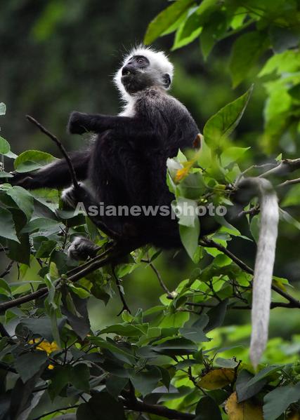 7月3日,在广西壮族自治区崇左市白头叶猴国家级自然保护区(板利片区)生态旅游区,野生白头叶猴在树上小憩。