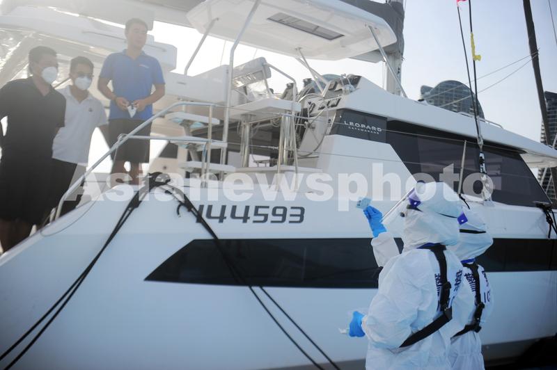 图片说明:2022年7月4日,海南三亚,“零关税”猎豹50型”阿波罗“号双体帆船停泊在三亚港。