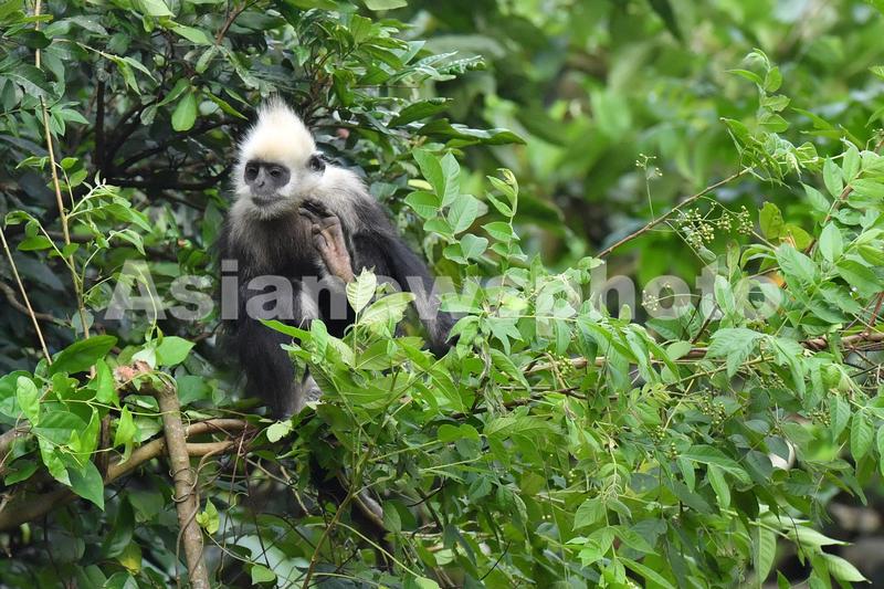 2022年7月3日,在群山连绵,植被茂密的广西壮族自治区崇左市白头叶猴国家级自然保护区(板利片区)生态旅游区,不少野生白头叶猴在树上、岩石上玩耍或采食树叶,其动作轻盈灵巧、情趣盎然,令不少游客大饱眼福。