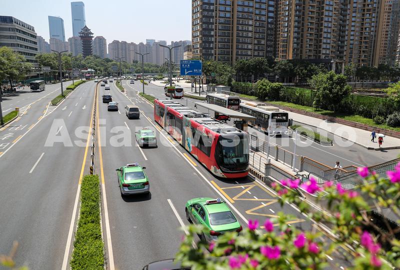 图片说明:2022年7月6日,四川省宜宾市制造的智轨电车“蜀都号”和“天府号”在成都市载客试跑,不少市民前来体验感受新的出行方式。