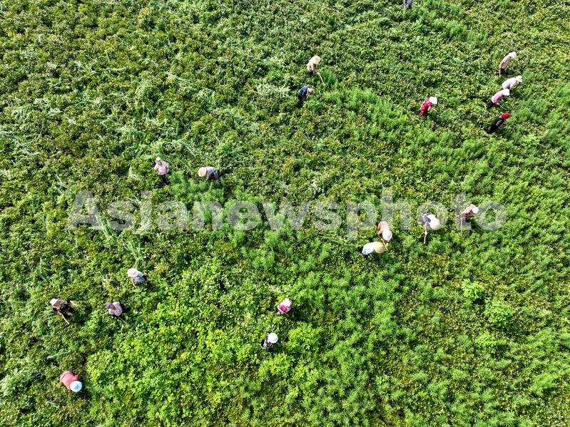 图片说明:7月11日,在安徽省亳州市谯城区十八里镇蒋李村,药农冒着高温在中药材白芍地里进行除草。