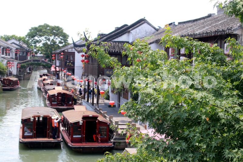 2022年7月12日,游客乘坐仿古游船游览江苏苏州山塘街水巷。当日,江苏苏州持续高温,颇具江南水乡特色的“姑苏水上游”特色旅游项目成为许多游客消夏避暑的好选择。游客乘船饱览姑苏“小桥、流水、人家”美景别有一番意境。