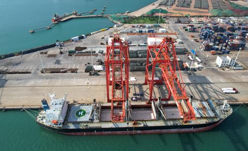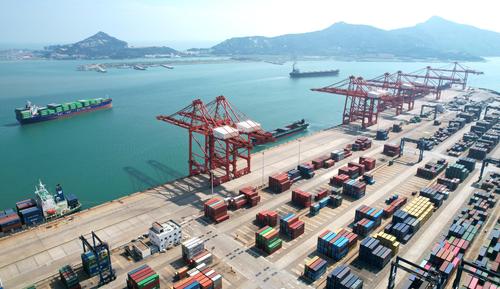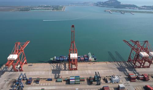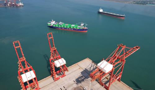 图片说明:2022年7月13日,江苏连云港港集装箱码头一角。