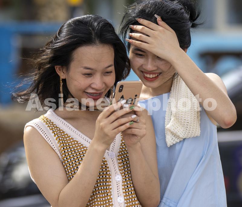 图片说明:7月14日,在海南万宁日月湾,游客欣赏美照。