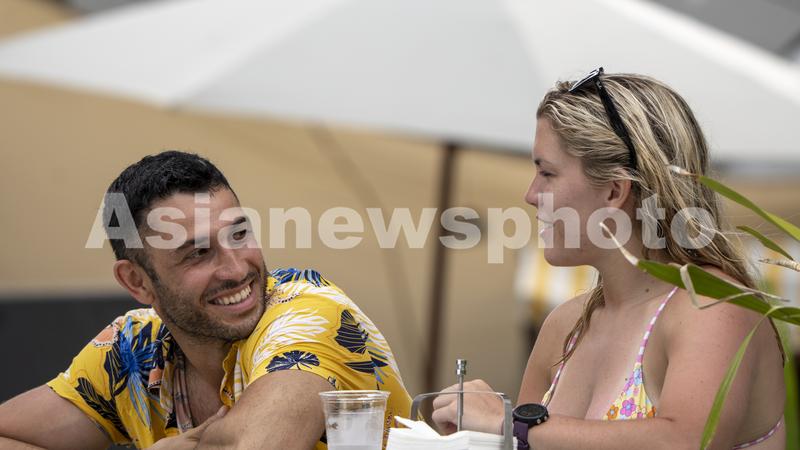 图片说明:7月14日,在海南万宁日月湾休闲的外籍游客。