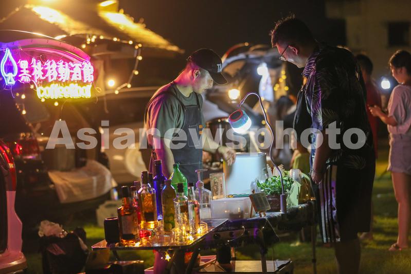 图片说明:2022年7月15日,浙江省湖州市德清县下渚湖街道二都景区“后备箱夜市”登场,吸引了众多市民游客光顾、选购。