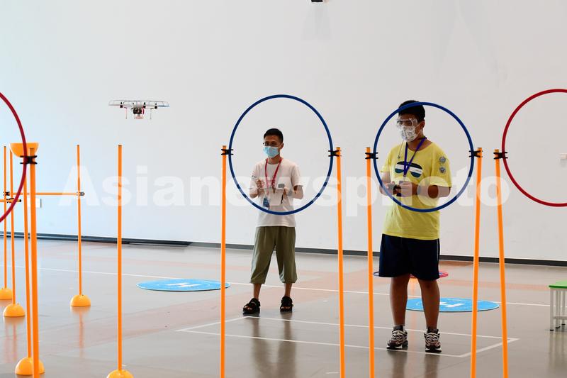 2022年7月21日,第六届全国青少年无人机大赛(浙江赛区)在金华市金华之光文化广场举行,选手们正在操作无人机参赛。