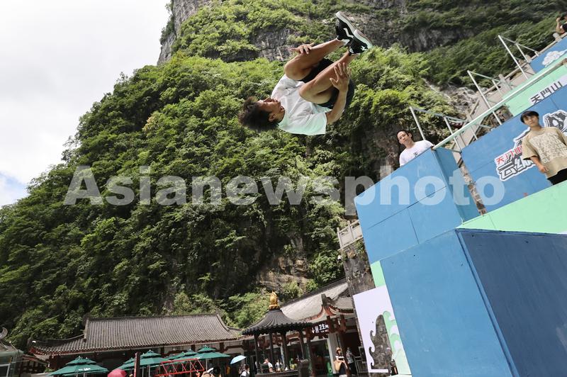 2022年7月22日,参加张家界天门山“云纵天梯”跑酷大赛的选手在赛道进行试跑热身。7月23日-24如,这场高水平跑酷赛事将在湖南张家界天门山景区举行。届时,64名国内优秀跑酷运动员和5名女子外卡组选手,将齐聚天门山标志性景观999级“天梯”,在狭窄陡峭的超长赛道上同场竞技。
