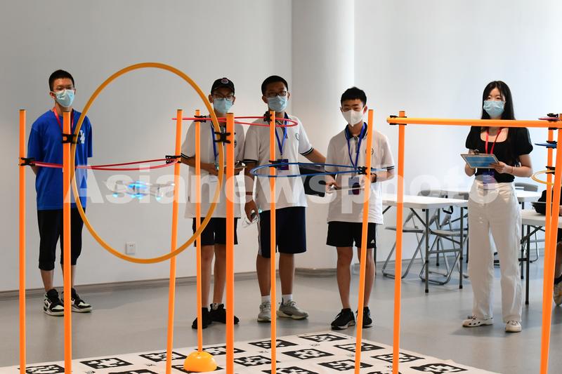 2022年7月21日,第六届全国青少年无人机大赛(浙江赛区)在金华市金华之光文化广场举行,选手们正在操作无人机参赛。