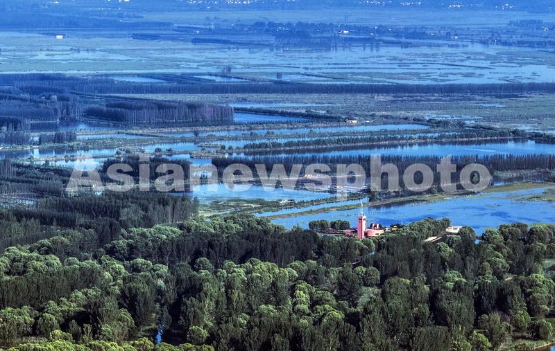 图片说明:2022年7月24日,山东省微山县,盛夏时节的微山湖湿地。