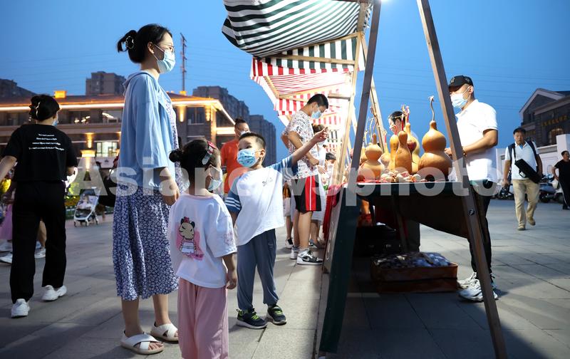 2022年7月22日晚,连云港市海州区盐河驿时尚中心,众多市民在盐河驿水上游览项目启动仪式现场购物。