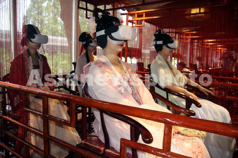 图片说明:2022年7月26日,游客在江苏苏州拙政园VR馆内体验。