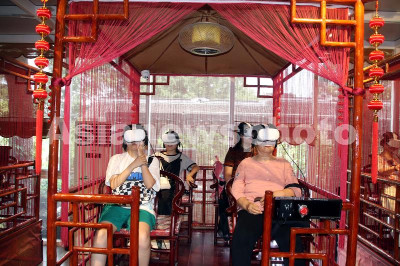 图片说明:2022年7月26日,游客在江苏苏州拙政园VR馆内体验。