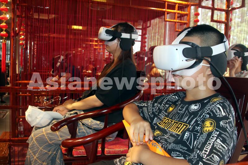 图片说明:2022年7月26日,游客在江苏苏州拙政园VR馆内体验。
